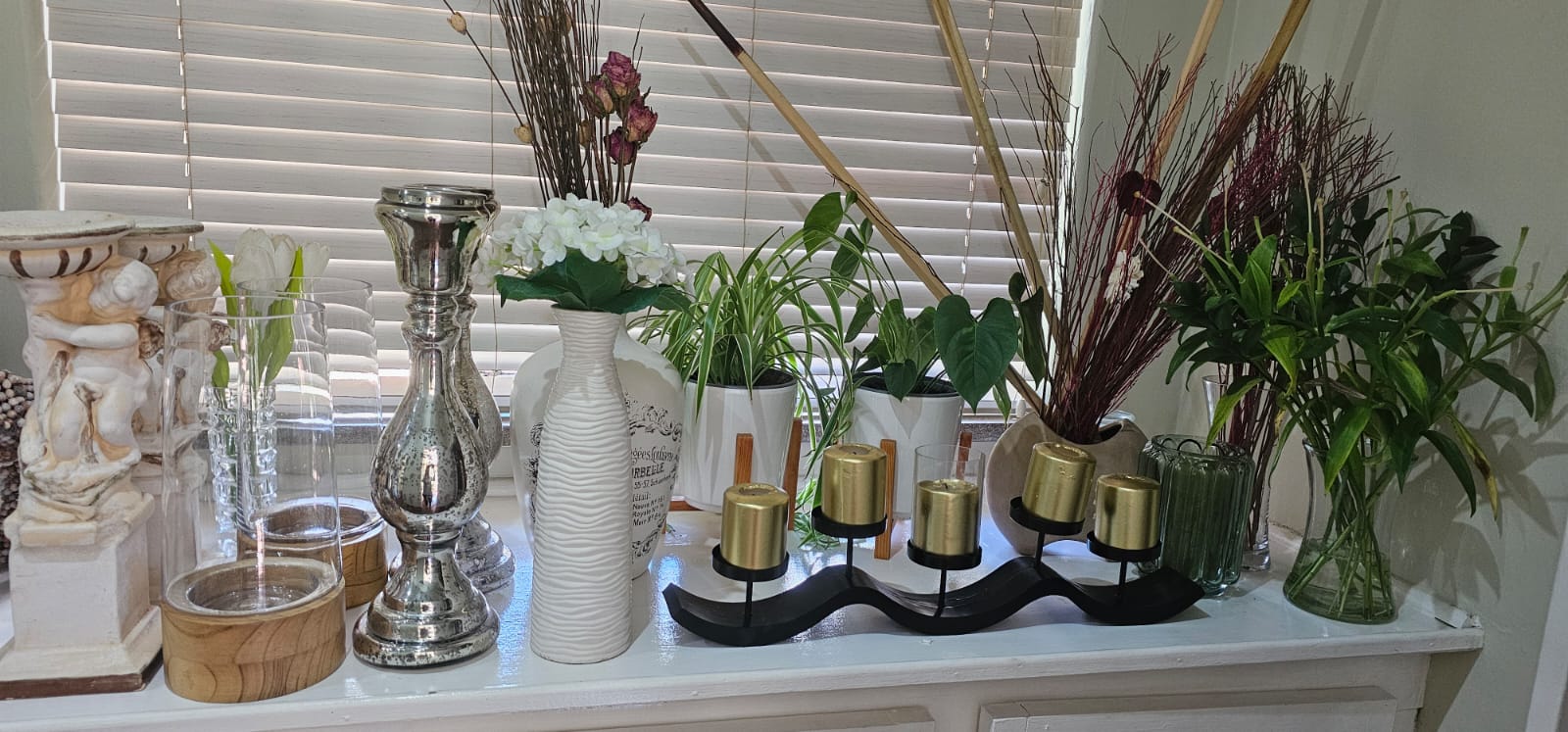 LARGE VARIETY OF VASES, CANDLE HOLDERS, FAKE PLANTS ETC - PRICE ON THE DAY (C BENONI)